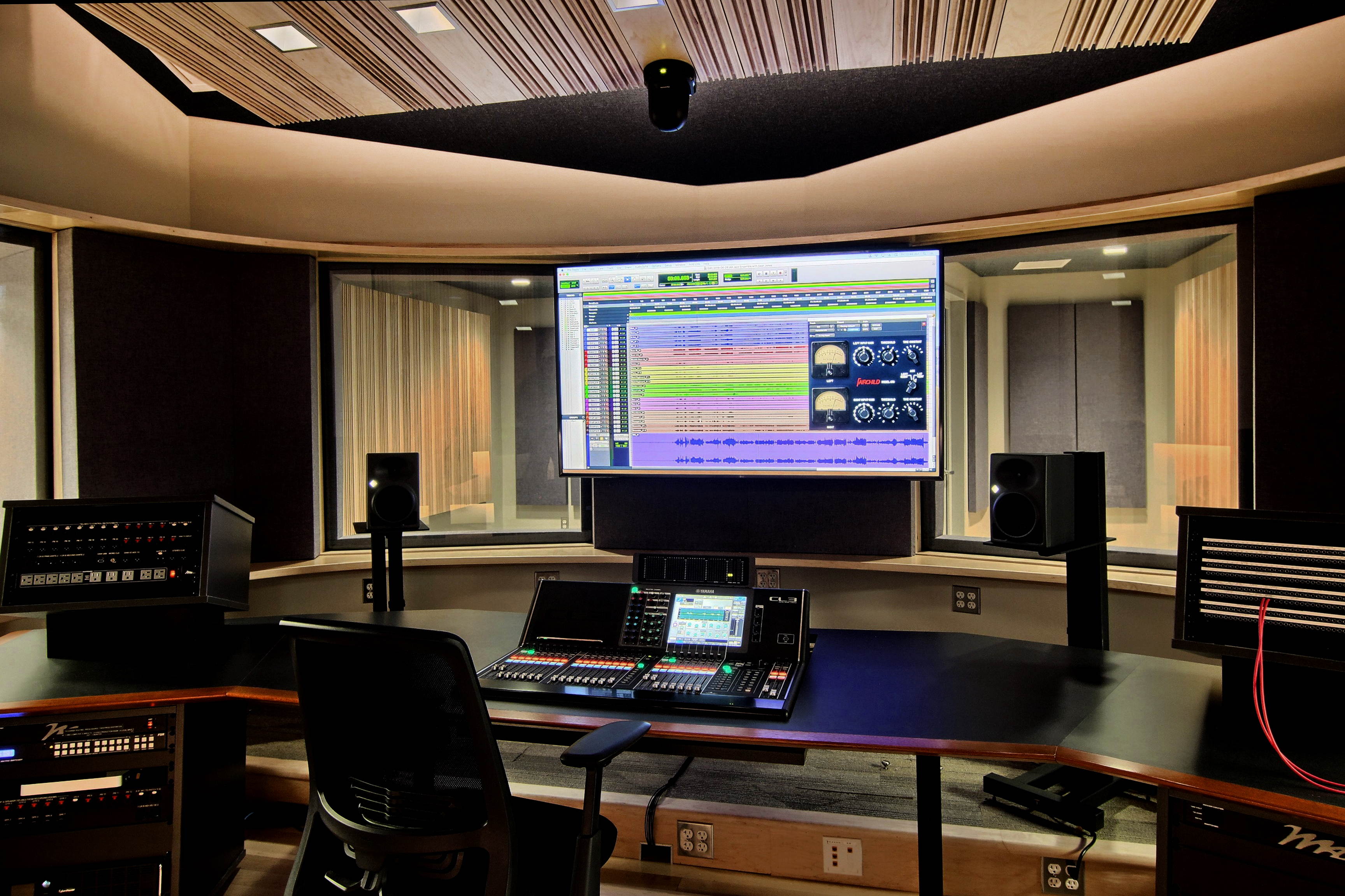 Both C.R.’s are equipped with intuitive, Dante user-interface and network management programs as key systems integration elements. The ground level studio features a 250 sq. ft. Control room bookended by two dedicated Iso Booths.  Adjacent to the left of the C.R. is a 900 sq. ft. Ensemble Room for orchestras.  An 800 sq. ft. Singer/Songwriter Room is situated on the right side of the C.R., which also features windows into both spaces. A second (300 sq. ft.) C.R. built on the 2nd level is outfitted with 7.1 Surround Sound Neumann Speakers and is also fully linked to all performance spaces to facilitate simultaneous live recording and/or mixing sessions.