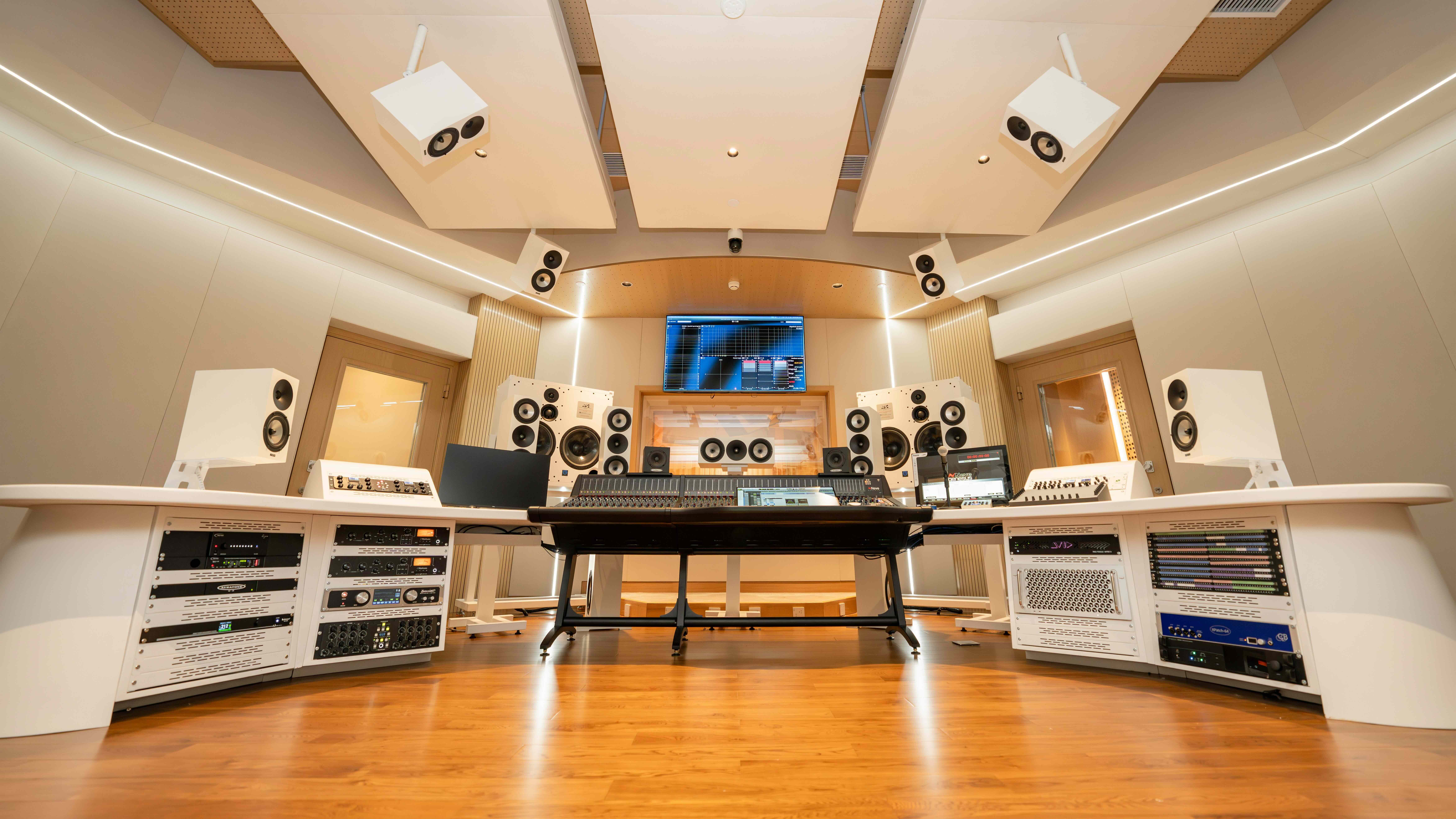“The design approach combined Alibaba’s vision for minimalist, modernist spaces with the complex technical demands of world-class AV production,” says Molho, who spearheaded the studios’ design development. “Each control room was designed as a unique entity with its own spatial logic, yet all maintain visual cohesion through light wood details and custom technical furniture. The curved ceilings and flowing soffits were not only aesthetic choices - their geometries were precisely shaped to enhance acoustic and visual performance. Lighting plays a defining role, following the orientation of the acoustic treatment to emphasize structure and add movement through subtle changes in luminance and color.”