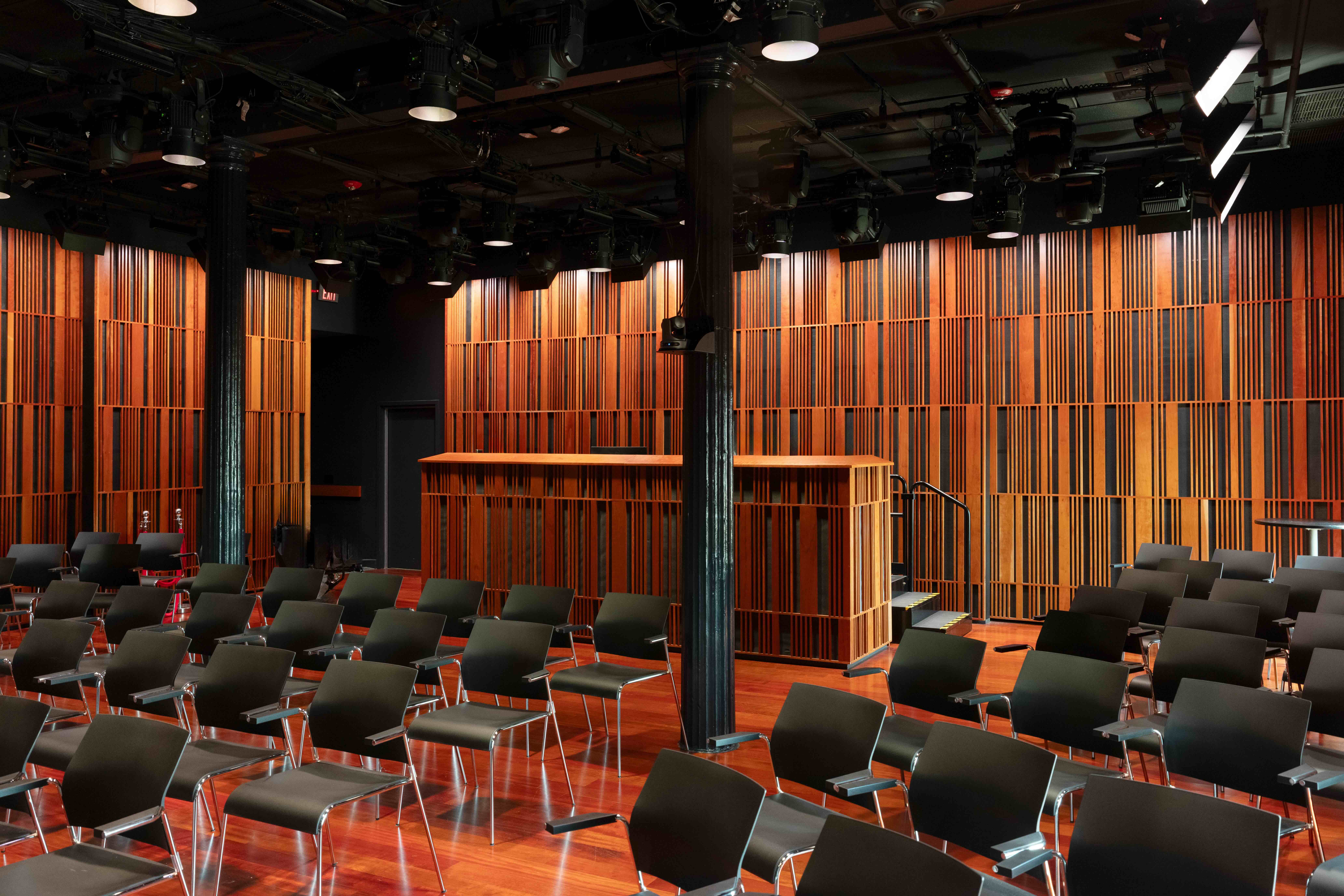 A key part of the project was retaining the Performance Center’s existing acoustic character while tightening it in both an acoustic and A/V sense for its expanded range of responsibilities. The WSDG Team took inspiration from the Performance Center’s slatted wood acoustic wall treatments to design a new, permanent front of house position that could serve these purposes. The team also made A/V recommendations for the sound system to optimize acoustic results. “It’s ultimately a balance of needs here – preserving the magic of a small, lively performance venue while optimizing it for recording and streaming,” said WSDG Partner, Director of Construction Technology, Matt Ballos. “Doing that while also designing a purpose-built FOH position that matched the feel of the room allowed us to elevate the entire space without compromising what made it special in the first place.”